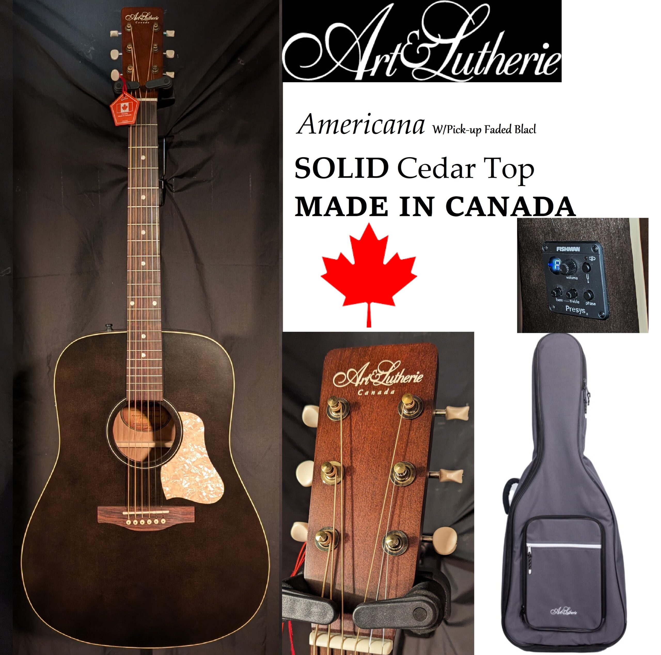 Art Lutherie Americana Dreadnought Cutaway(Faded Black).Solid Cedar top,Wild Canadain Cherry Back&Sides,Rosewood Fretboard and bridge.Presys II Fishman pick-up system with Tuner.NO CHARGE Gig Bag $109 Value