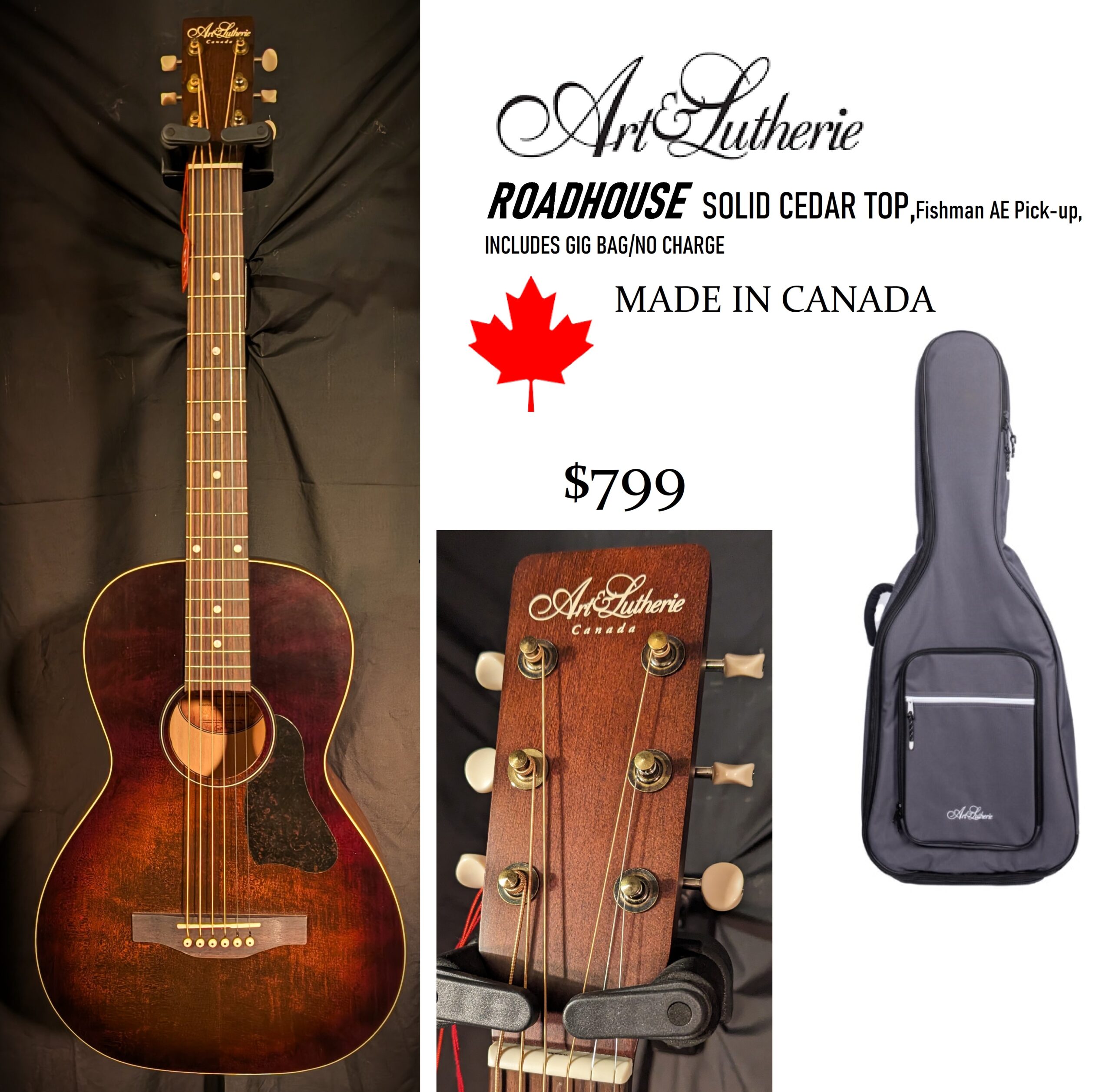 Art Lutherie, Parlor size acoustic,SOLID Cedar top,Canadian wild Cherry back&sides,Rosewood Fretboard and Bridge.Fishman AE Pick-up system.Includes A&L Gig Bag NO CHARGE $109 Value