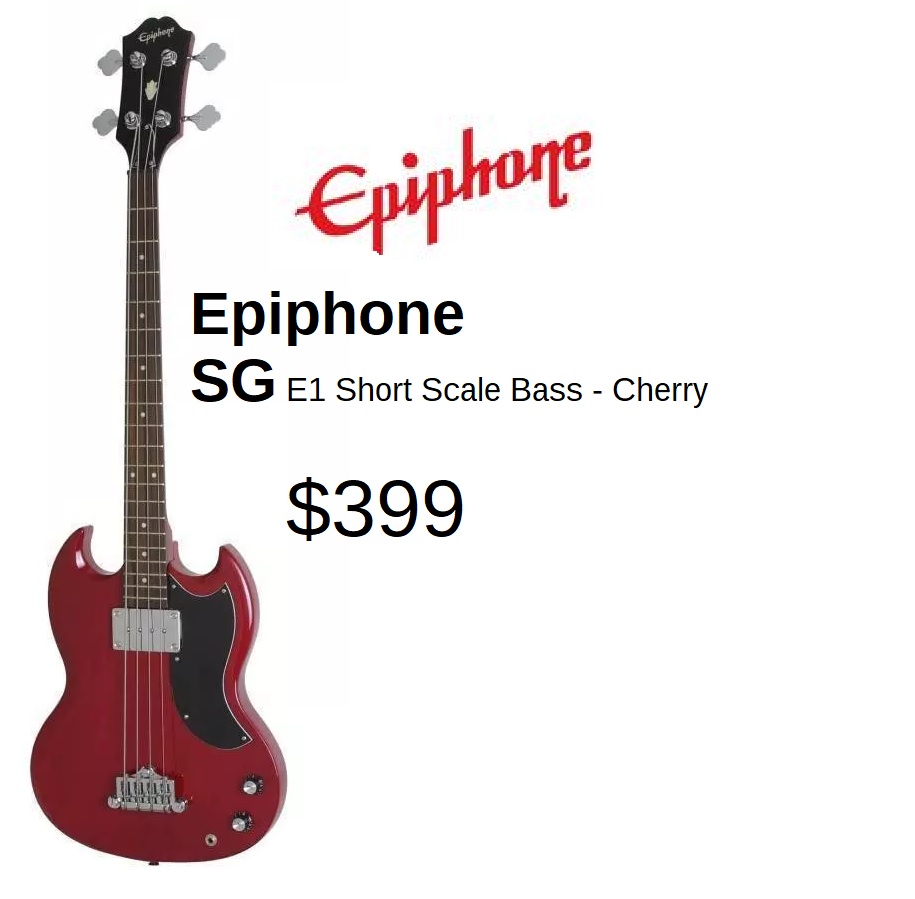 The SG E1 bass makes the authentic SG shape available to all bass players with its easy to play short-scale, narrow neck and total fret access. Its powered by a single Sidewinder bass Humbucking pickup for authentic rock tone.