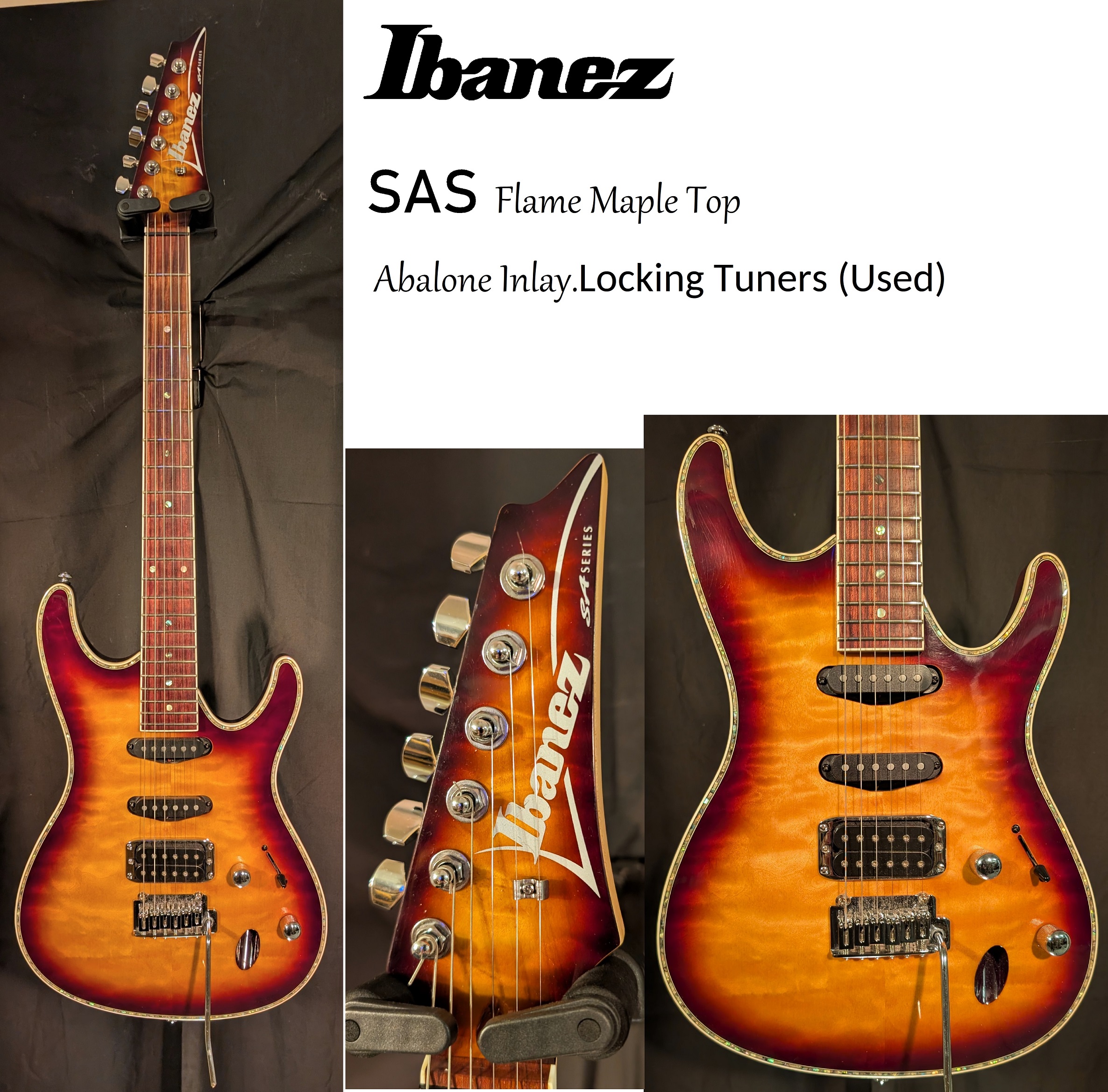 Ibanez SA Series Flame Maple Top with Matching Headstock cap,Abalone Inlay,2 pivot Tremolo Bridge,Humbucking Bridge Pick-up with 5 way Switching,Locking Tuners, (USED)