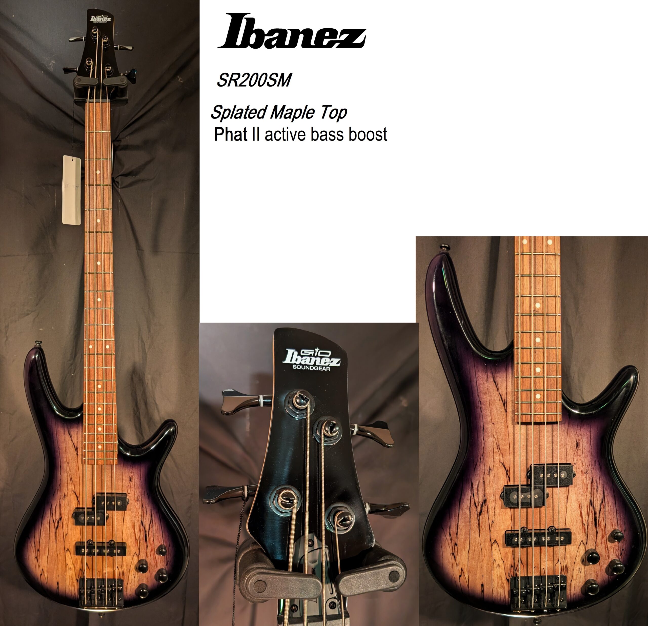 SR200 Splated Maple Top ,Phat bass boost,Maple Neck,Neck pickup: Dynamix P neck pickup