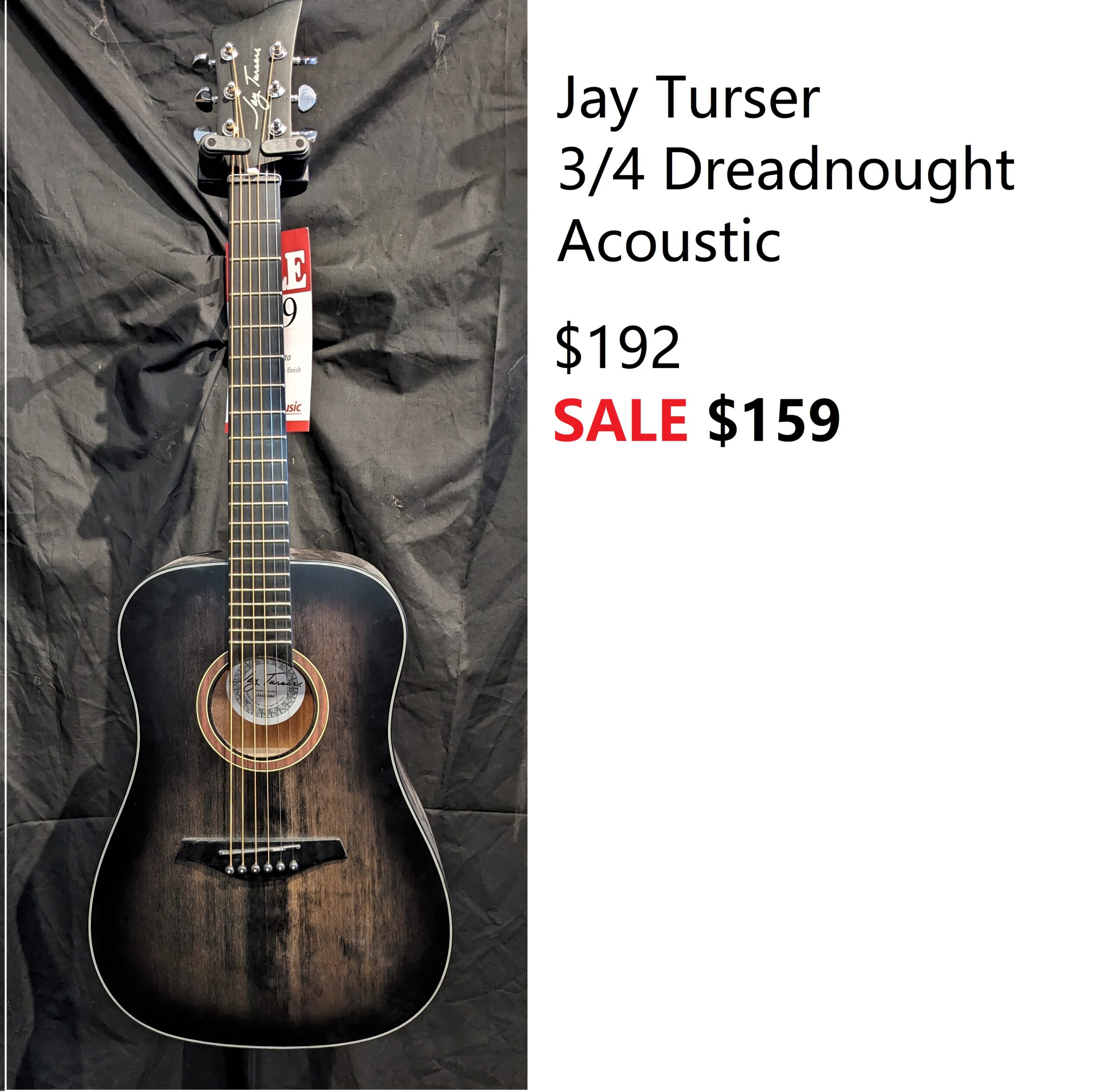 Jay Turser 3/4 Acoustic Guitar, Satin Black